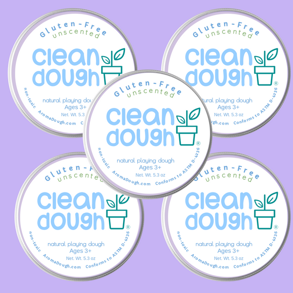 UnScented Clean Dough with still all the fun! This fabulous 5-pack of modeling dough is a gluten-free dream come true! Dive into a world of creativity without the sneaky gluten allergies or scent sensitivities crashing your party. With our unscented dough, even your sensitive skin and noses can join in the fun! 98% natural plant based color.